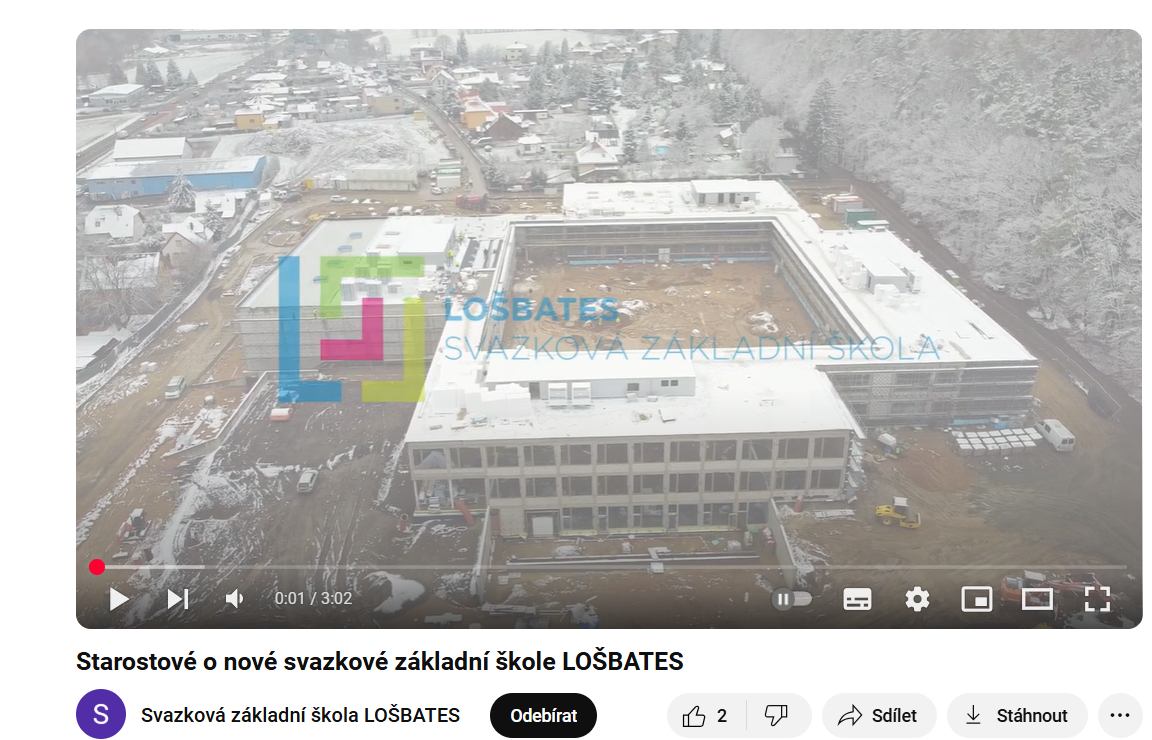 Je neuvěřitelné, jak rychle naše nová škola roste. Zdá se to jako včera, kdy jsme slavnostně poklepali na základní kámen, a teď už je hotová hrubá stavba včetně střechy a zasklení. Pojďte se společně se všemi starosty a dalšími členy týmu podívat, jak to teď uvnitř školy vypadá, a připomenout si, co všechno už svazek obcí LOŠBATES zvládl. Ve videu, které jsme pro vás připravili, nechybí ani pohled na celou školu z ptačí perspektivy.