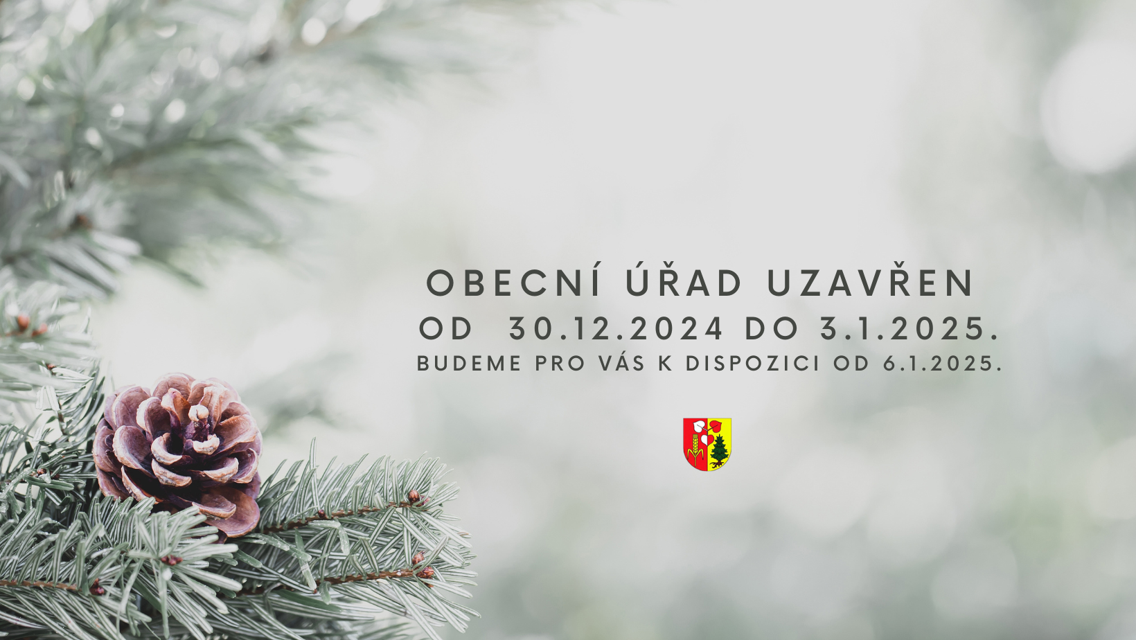 Vánoční přání a informace k uzavření úřadu během svátků.