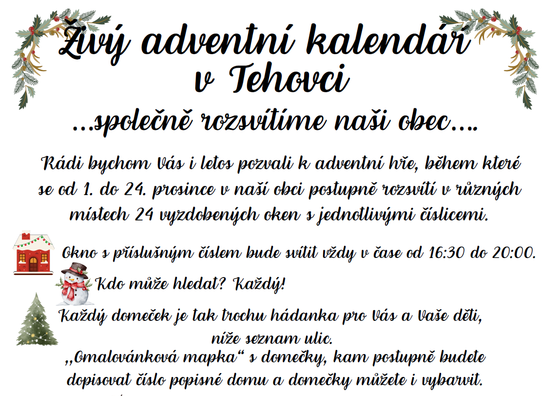 Zpříjemněte si procházku v čase adventu, každý den se v obci rozsvítí jedno nové adventní okénko.